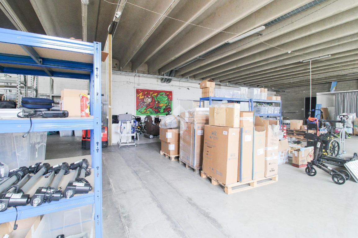 L’immobile ha una superficie complessiva di 480 metri quadrati, situato al piano terra. La proprietà comprende anche un’area esterna non in esclusiva, ma in comune con gli altri affittuari. Il capannone ha un’altezza di 4,20 metri, mentre il portone di accesso è di 4 metri. La disposizione interna del negozio è divisa in due locali, tra cui un piccolo spazio riservato come ufficio.