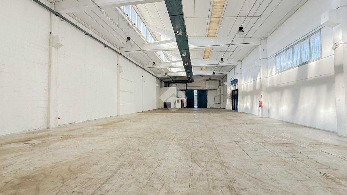 L'immobile si sviluppa su circa 500 mq, con due portoni d’accesso. Anche in questo caso si tratta di un openspace privo di pilastri, con altezza massima di 4,5 metri. È servito da impianti elettrico e di illuminazione, oltre a una zona uffici con relativi servizi.