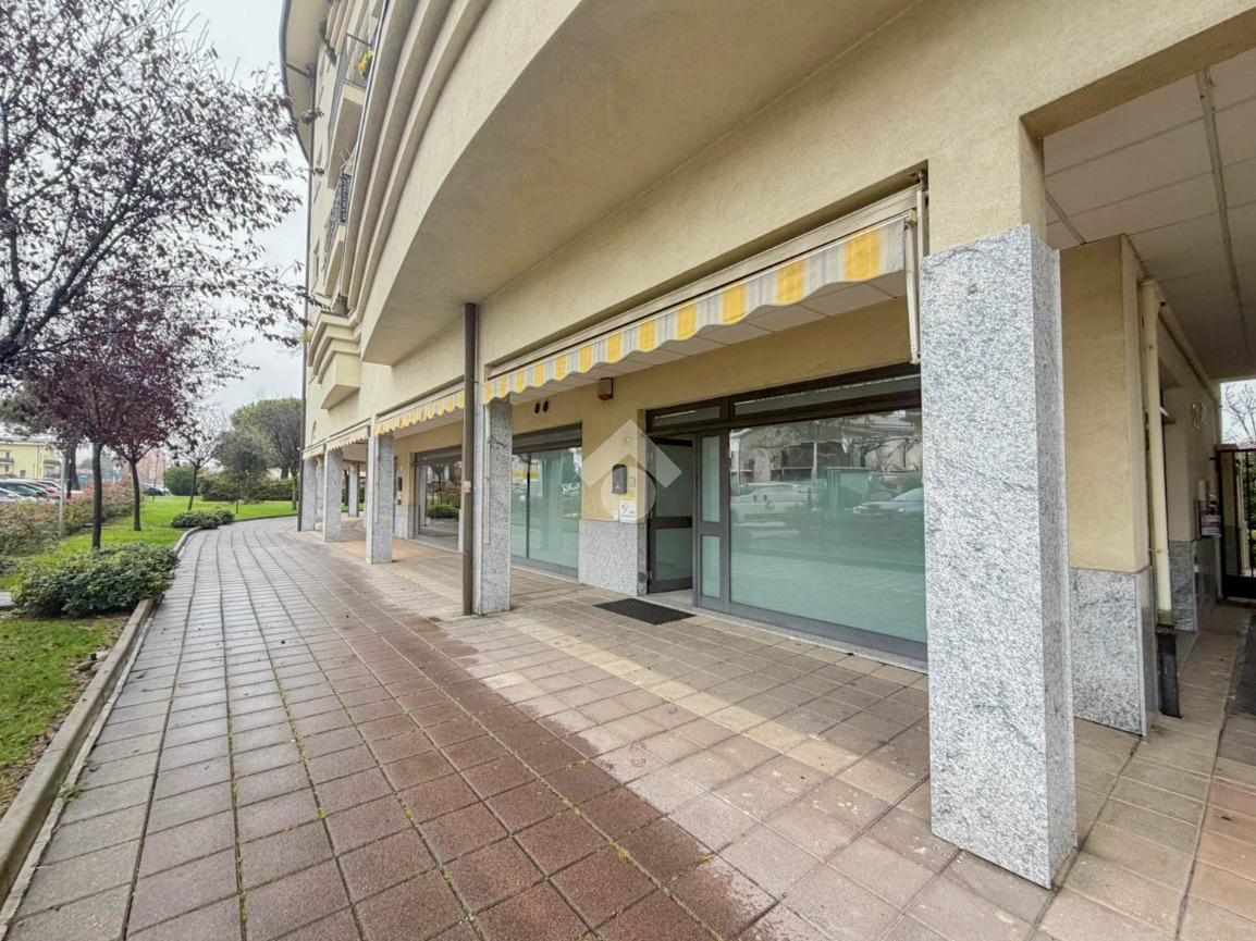 Proponiamo in locazione un negozio di circa 95 metri quadrati, situato al piano terra di una struttura condominiale.